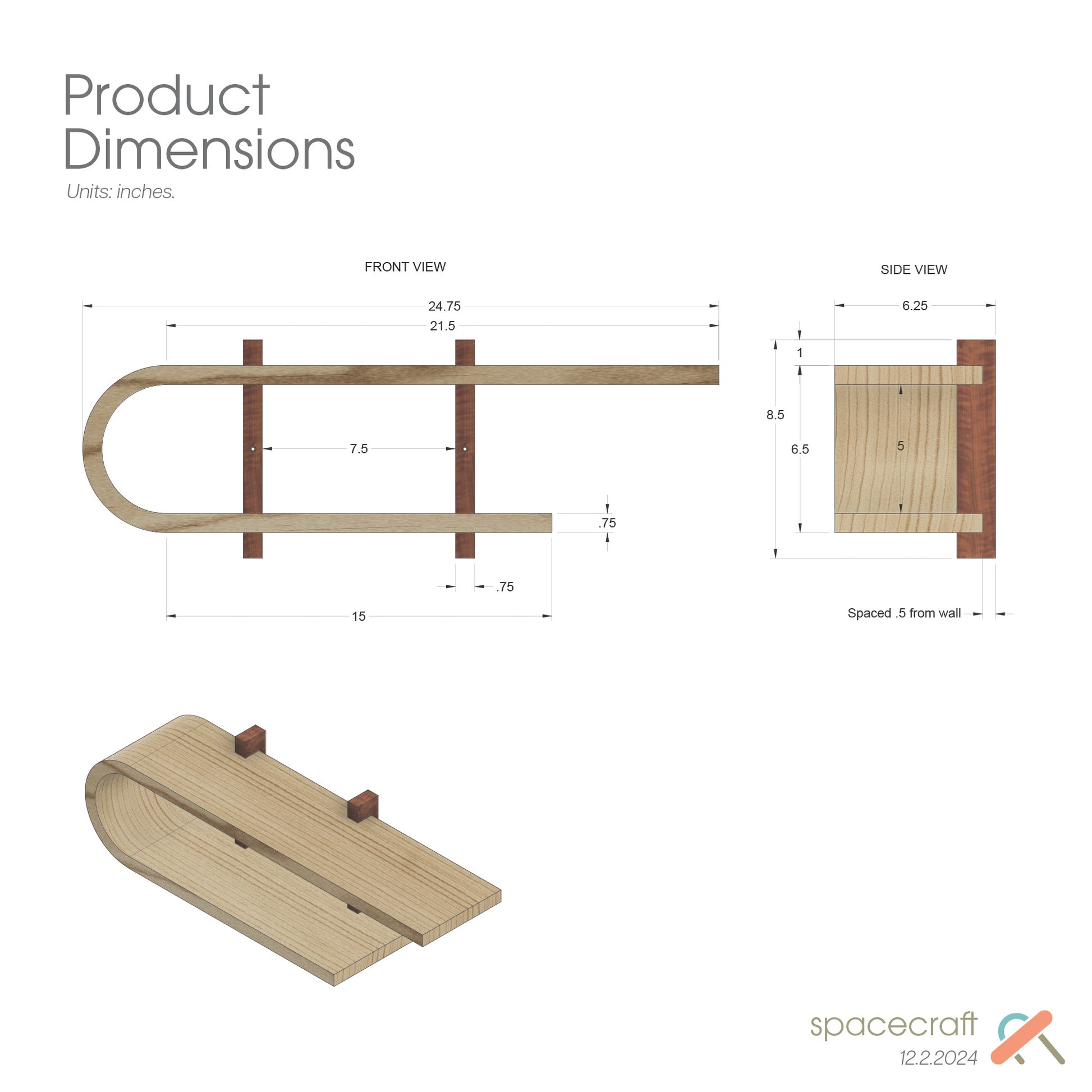All shelves are finished with multiple layers of semi-gloss polyurethane, making them water and scratch-resistant. Each shelf is handmade in Milwaukee, Wisconsin. Due to the nature of the wood, each item may have slight variations. This just simply adds beauty, authenticity, and uniqueness. Each shelf is one of a kind. Fabrication takes 3-4 weeks. Please don’t hesitate to reach out with questions or special requests.
