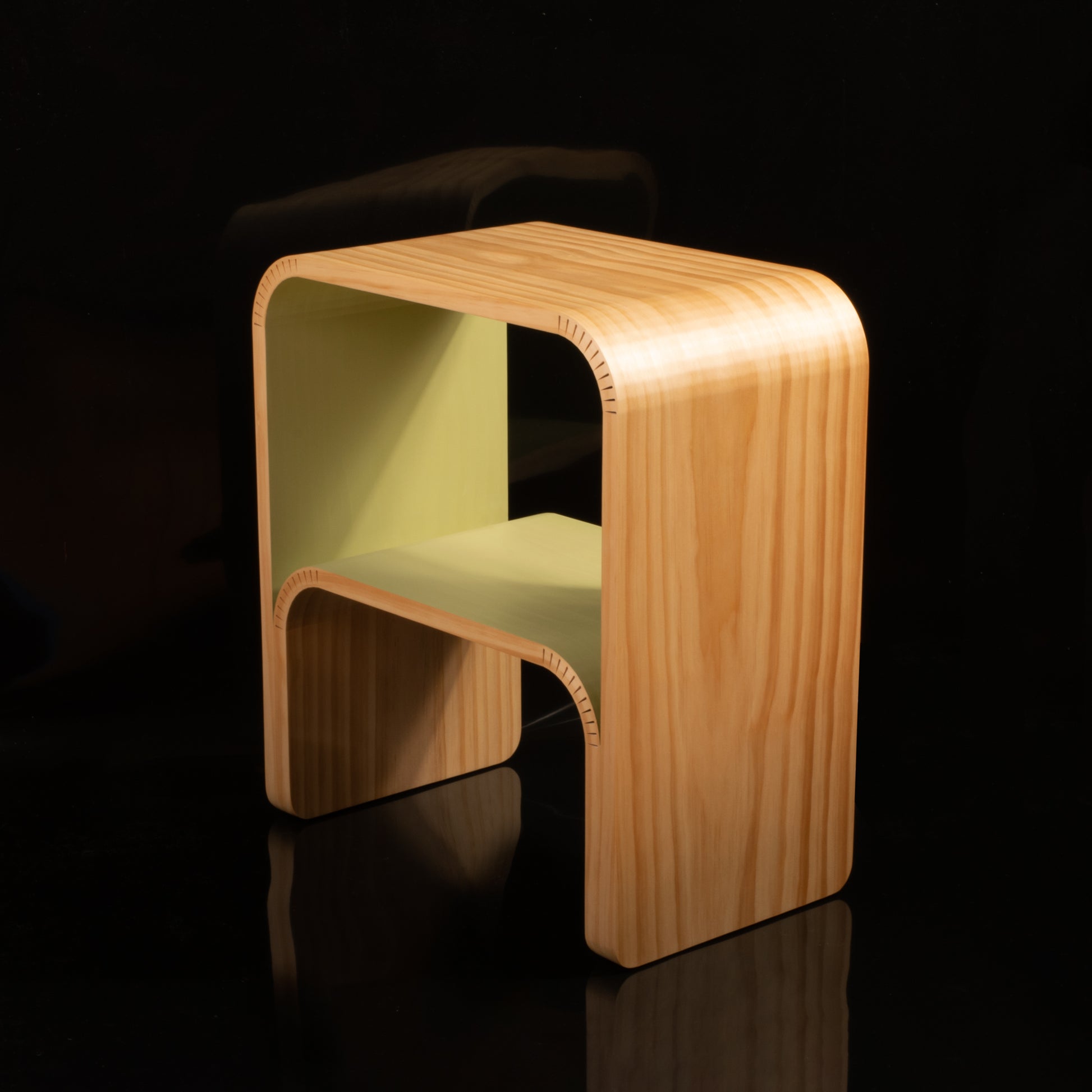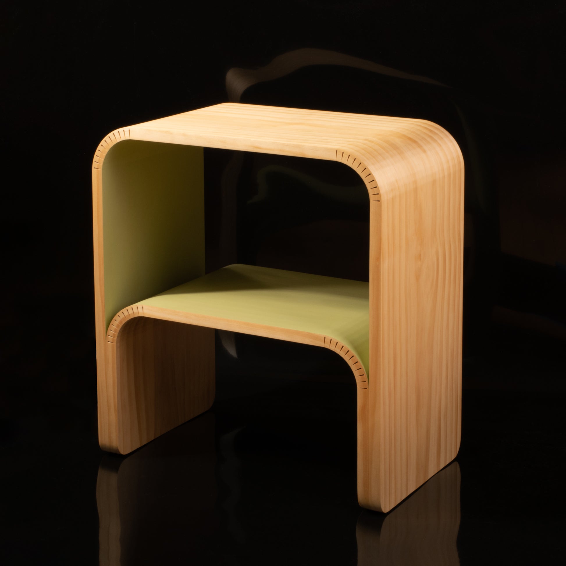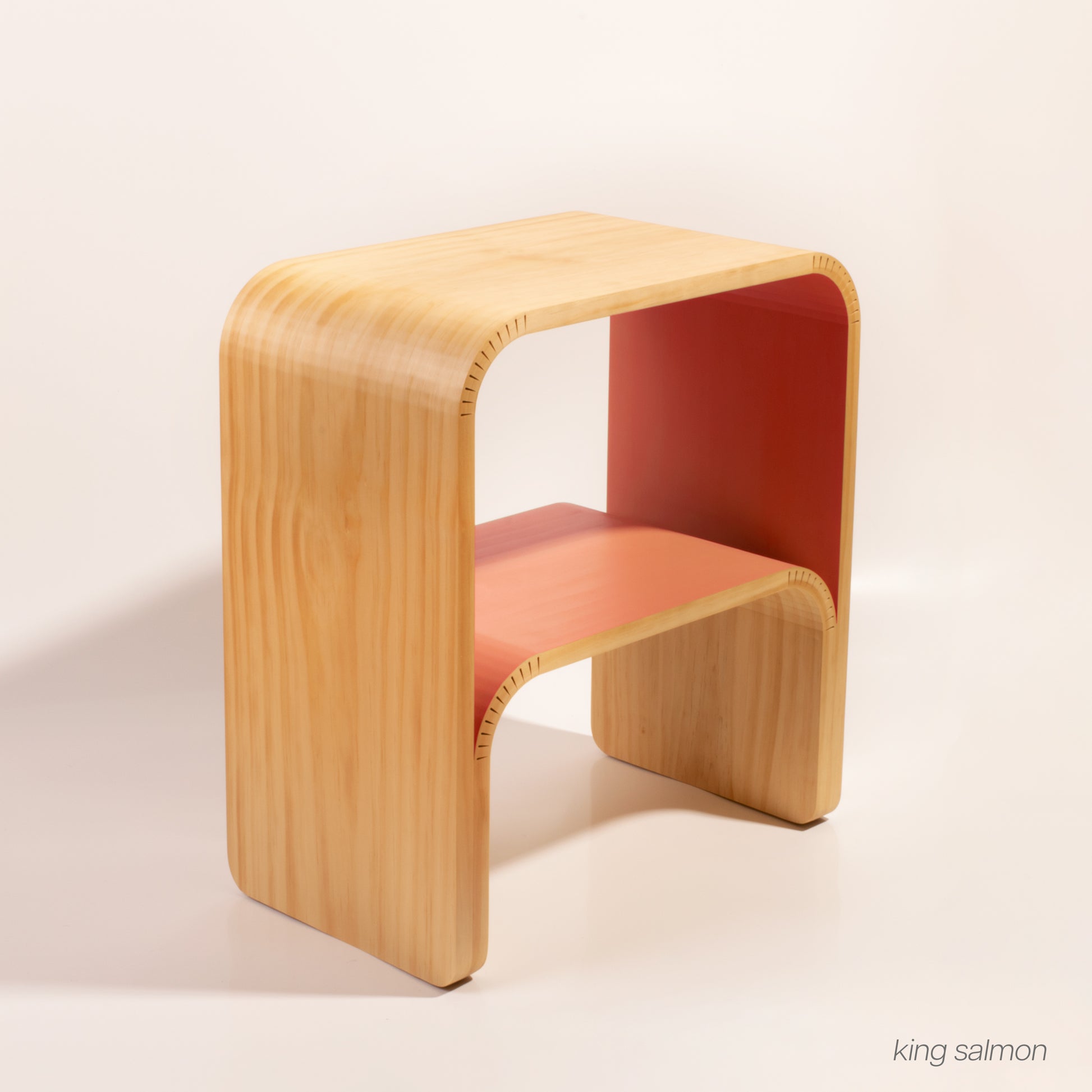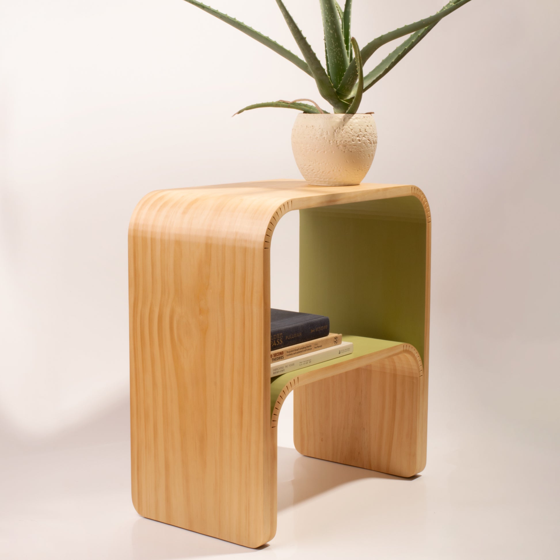 Crafted from sustainably sourced New Zealand pine, these handmade side tables add a splash of warmth and color to any setting. Designed with form and function in mind, its gentle curves combine to form an immensely strong structure. Eloquent but not delicate, this piece is designed for everyday use.